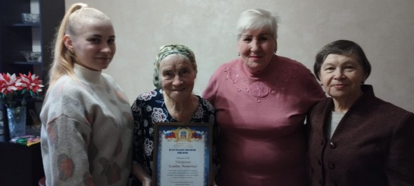 10 декабря 2022  главный специалист по работе с молодежью Каменоломненского городского поселения совместно с организацией ветеранов Каменоломненского городского  поселения поздравили с юбилеем Кобелеву Клавдию Матвеевну. В праздничной обстановке вручили Благодарственное письмо от Главы Администрации Каменоломненского городского поселения Максима Сергеевича Симисенко, а так же памятные подарки от организации ветеранов.