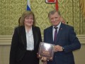 В завершении Л.В.Овчиева вручила Почетную книгу «Созидатели Октябрьского района 1938-2023» жителям района, которые вносили и продолжают вносить весомый вклад в развитие муниципального образования
