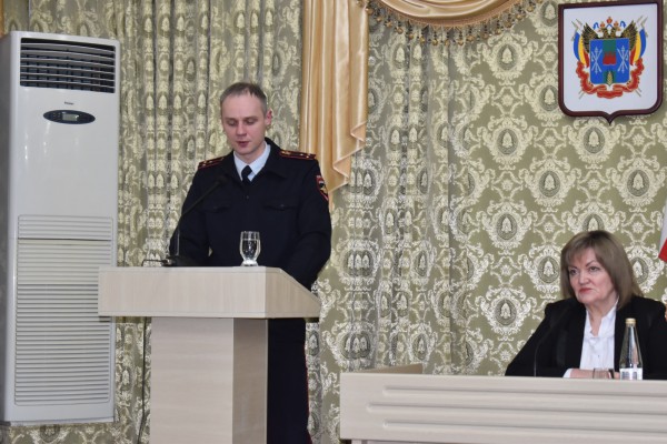 Помимо главы Администрации Каменоломненского поселения свой отчет представили - участковый уполномоченный полиции ОП № 3 МУ МВД РФ «Новочеркасское» И.В.Сербин.