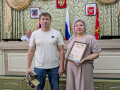 Временно исполняющая обязанности главы Администрации Октябрьского района Татьяна Юшковская, глава Администрации Каменоломненского городского поселения Максим Симисенко, заместитель председателя Собрания депутатов-главы Каменоломненского городского поселения Евгений Омаров, председатель Совета ветеранов Октябрьского района Юрий Точеный вручили Почетные грамоты и Благодарности: