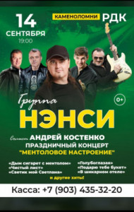 Приглашаем вас на концерт группы "Нэнси", который состоится 14 сентября в районном дворе культуры поселка Каменоломни. Начало концерта в 19:00.