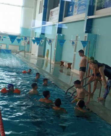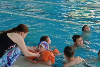 Посещение бассейна благотворно влияет на детей, закаляет их, укрепляет все виды мышц и нервную систему.
