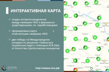 Напомним, цифровая платформа «Атлас НКО» обеспечивает бесплатный пользовательский доступ к информации о любой НКО, зарегистрированной в России. Она включает обобщенные данные из открытых источников, позволяет оценить благонадежность и эффективность деятельности НКО. Также платформа помогает визуализировать «насыщенность» некоммерческими организациями крупных городов и муниципальных районов в регионах и определяет «живость» организаций, т.е. когда организация не просто создана и существует на бумаге, а реально осуществляет свою деятельность.