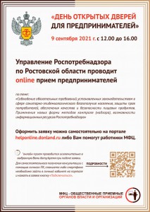 Обращаем ваше внимание, что в рамках проекта «МФЦ – общественные приемные органов власти и организаций» на портале https://helponline.donland.ru/ реализована организационно-техническая возможность проведения акции «День открытых дверей для предпринимателей» в формате онлайн-приема.