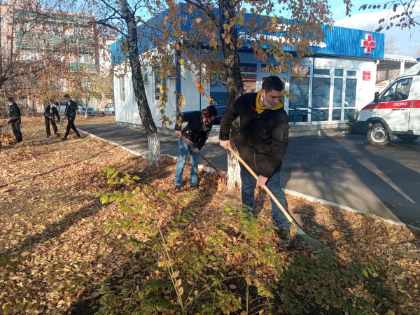 Экологический субботник на территории Центральной районной больницы провели волонтеры гимназии №20 в рамках Всероссийской акции взаимопомощи «МыВместе».